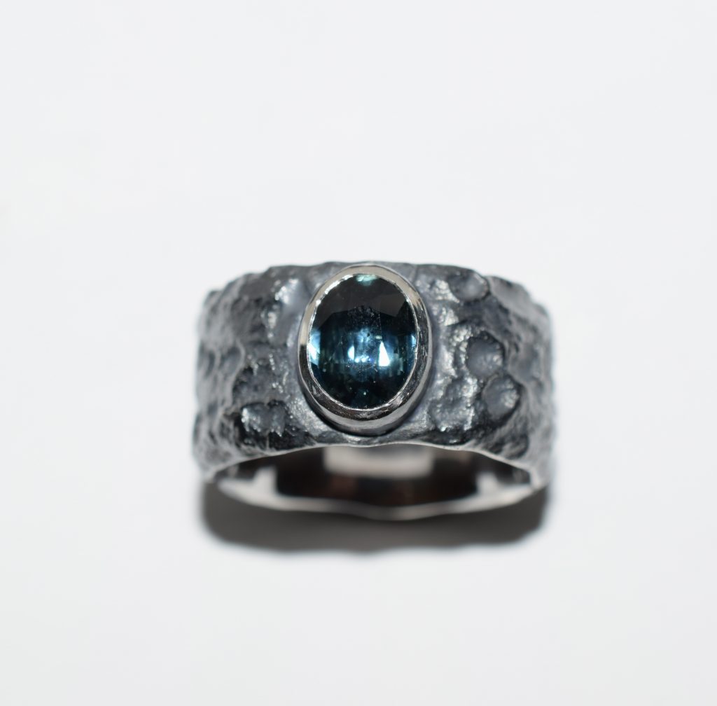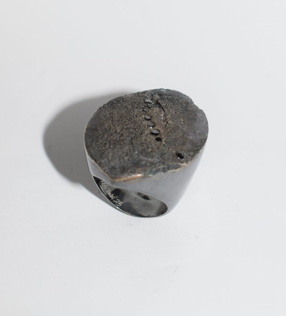 Mantelring in 925 Silber & schwarze Brillanten